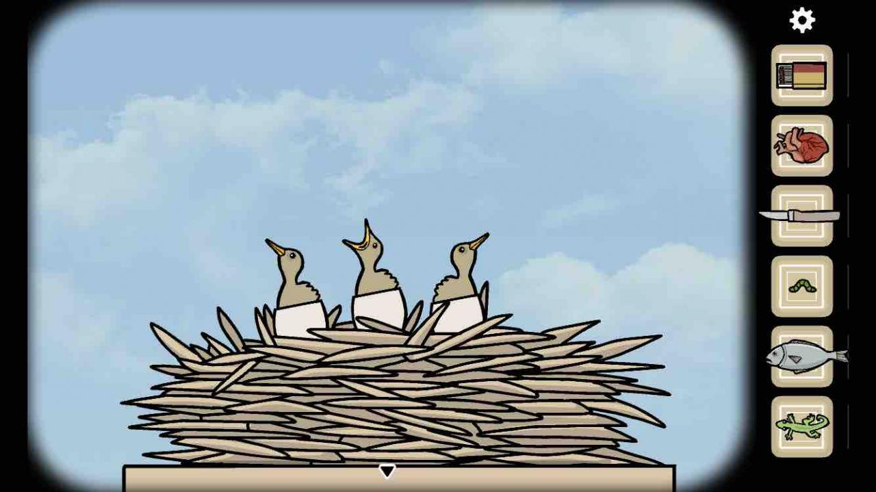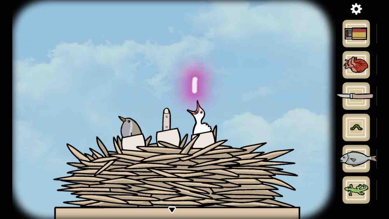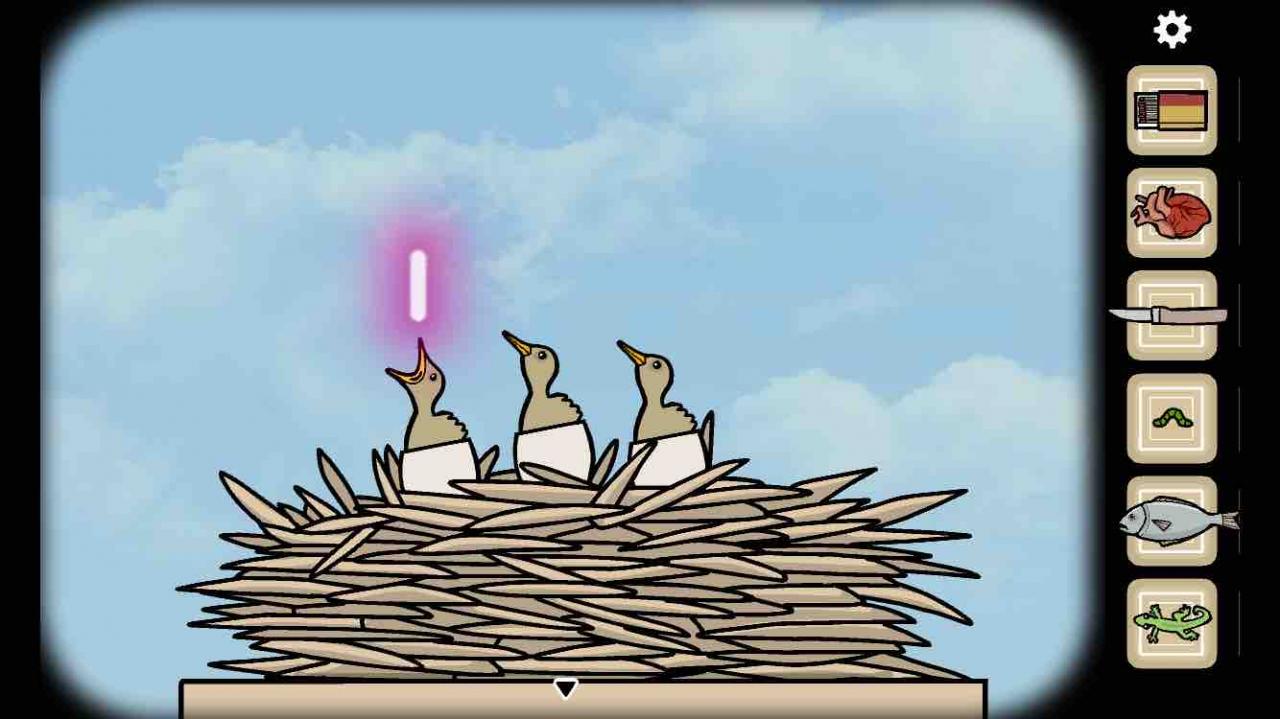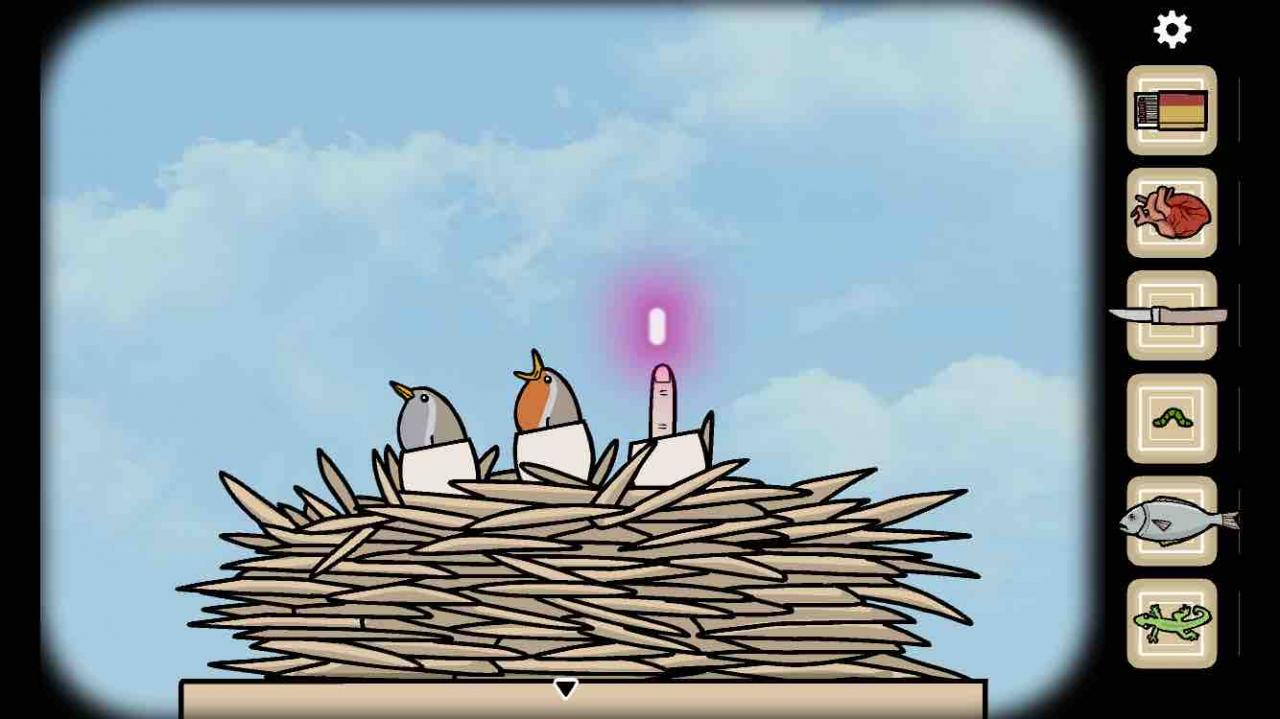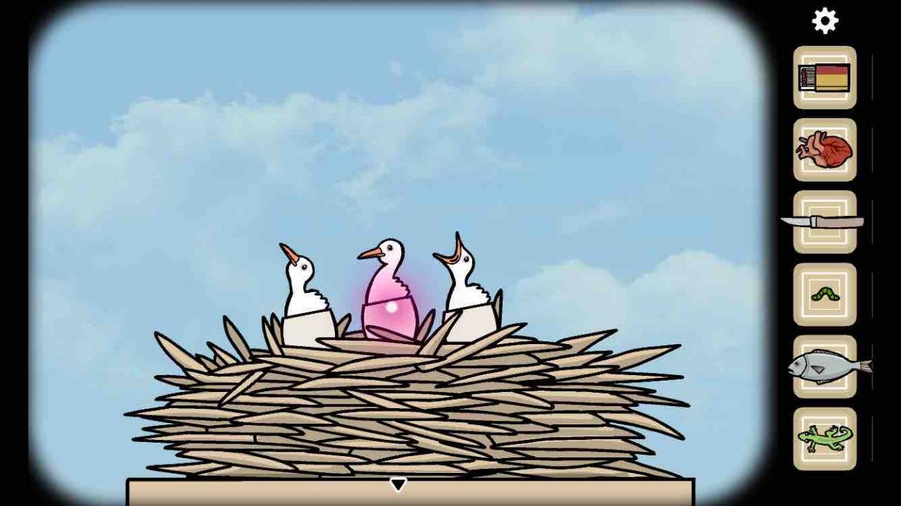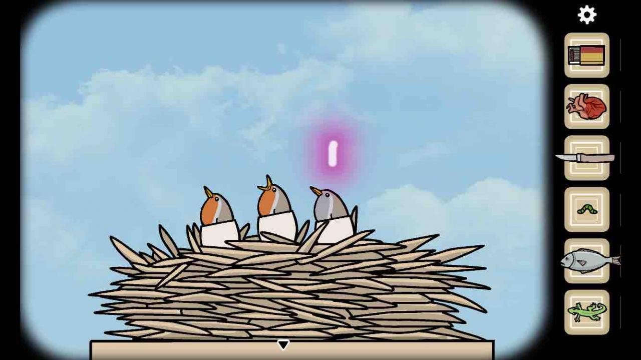 把【花瓣】和【蛋】装好,出发!-进入『蛋』房间-取回【蛋】,放进鸟窝,把它们仨都敲开。