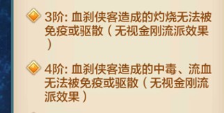 4阶效果,血刹造成的毒血无法被免疫或者驱散。那么东方+法王就可以无情迫害射雕大侠,三丰,妙手9,10,以及所有金刚侠客。(藏经阁怪:给我整一份)