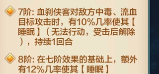 7,8阶效果,锦上添花。法王开局奥义有22%几率造成睡眠,可能第一回合有点起效,后续侠客奥义都能释放,容易打破睡眠,意义不是很大。残局可能有奇效