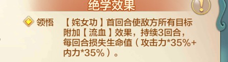 东方能提供4回合35%+35%系数的流血。总共会提高140%攻击+140%内力的毒爆伤害(来源东方)