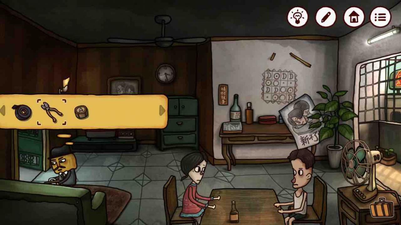 回到小两口家,进入阳台,活雷锋南瓜先生要开始工作了。使用【钥匙】打开电箱门,装上【保险丝】,一顿操作(其实就是把三个开关都打开)。风扇打开,把墙上的新不了情的海报都吹掉了,露出隔壁家防盗门的密码,画面左下角还出现一把【钳子】,丈夫说“人生开心一点算一点啦”,你太太怀着孕还饿着肚子你说开心一点算一点??