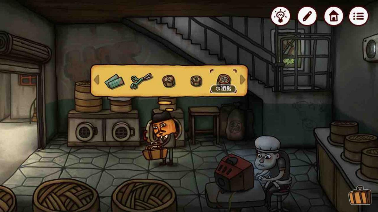 上楼,去包子铺,使用【打火机】点燃蒸笼下面的炉火。