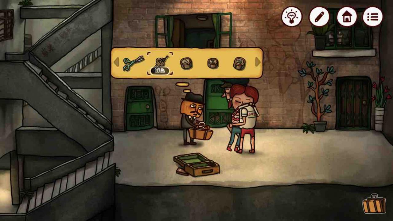 小两口和好了,我们得到肉铺后门的【钥匙】。还记得我们把明信片拼好的箱子吗?箱子上写着我们之前在肉铺里没打开的柜子的密码。把密码记下来然后去肉铺。