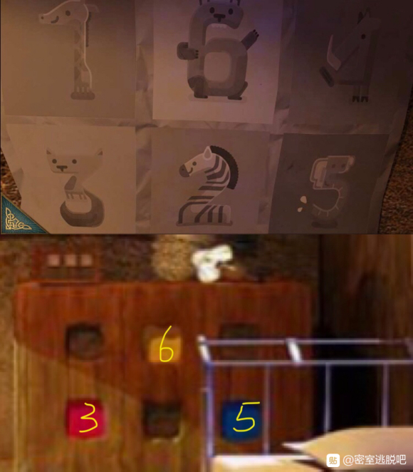 第四步:根据左边柜子得知数字顺序为蓝红黄