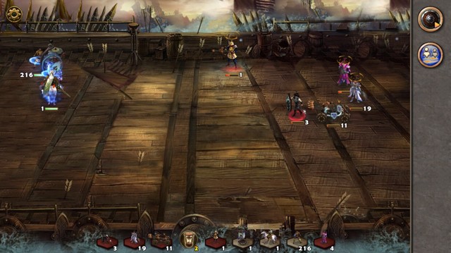 4.船头在低于5000血时(我不知道为啥我看不到血量,5000血大概在十一分之五左右)会获得一回合免伤护盾,之后会放出小boss。分别是双动胖子,小狗(三首猎犬),风伯,也是没两回合换一个。并且船头会在回合结束时释放毁天灭地,全图攻击每次都可以打死十几个鹰卫,一定要快点打死船头,不要管小boss。