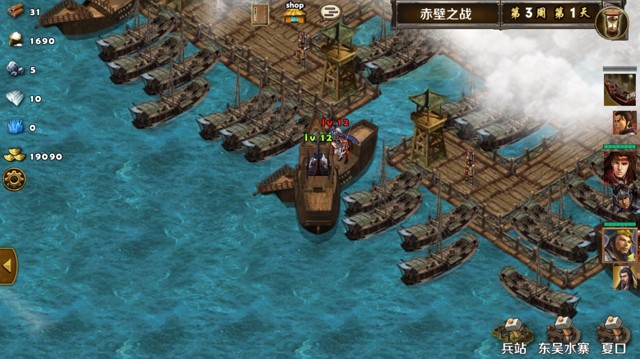 打完于禁两人后可以把右边张辽打掉,然后沿着曹兵战船往右把张郃两人打掉,因为3周1天夏侯出师四人会一起进攻,如果守株待兔的话容易行动点不够容易坐以待毙,孙权被打死。