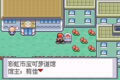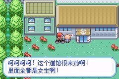 彩虹市的道馆在右边的角落砍树然后从下面绕过来,好偏僻。门口一糟老头子偷看