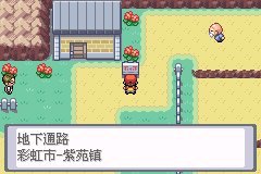 在这格草里a可以得到红苹,这片草可以抓喵喵和卡蒂狗。直着走想去金黄市发现警察不让走,还得用茶贿赂,没有。我们走地下通道去彩虹市吧