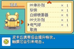 。我用内置修改器改出了电气球。携带后特攻翻倍。这里说明一下,原版单机无法获得电气球的,只能通过二周目的时候和红宝石版本联机交换精灵,携带道具电气球。386版我不清楚