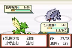 见面就剑舞幸亏他的岩石爆破没中,不然直接就没了,他第二次用的鬼脸,我继续剑舞,没办法,技能少,就剑舞三次,然后翅膀攻击,面对疾风吧