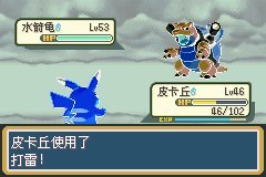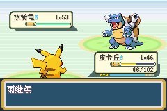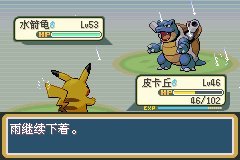 老龟上场了,怂他一手,换螳螂上场,扛了他一发水枪,不知道为啥他的龟都这个等级了还用水枪,剑舞一波发现他祈雨,雨天情况下雷电必中,我就给皮卡丘用药,换上场一发雷电带走 没有办法,他后面的精灵没有办法抵挡雨天的雷电电珠皮神,推了