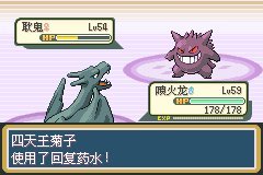 又猛又迷人 ,有故事啊,不然他为啥叫“大木”博士 见面就喷火一发不行就两发,用药我接着喷 耿鬼被烧伤了,有必要说明下这只58级的耿鬼超强,速度也很快,我第一次挂在这里了,我我又回档,把我的七个神奇糖果全都有用了才打过去