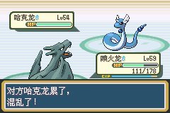 换上螳螂,哈克龙攻击自己,螳螂翅膀攻击,对面又攻击自己此时他大残,一定会打药,我们剑舞