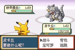 对决小绿,首发皮卡丘,因为他会用比雕,打雷带走。他换上铁甲暴龙,我们换螳螂,他的地震对飞行无效