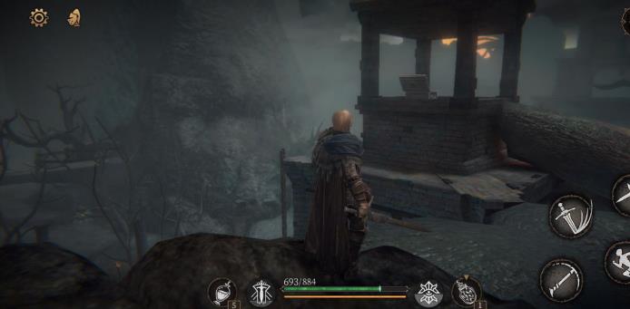 你进圣所后中间那道门打开出去走一截左边水上的桥是去山上的路。