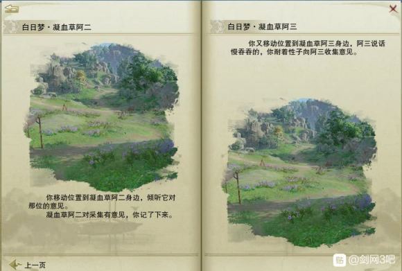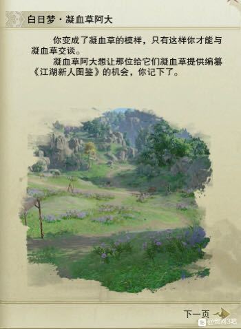 入睡之后技能栏会变成一个qte,变成凝血草之后分别和阿大阿二阿三对话,不得不说这个草是真的话痨。