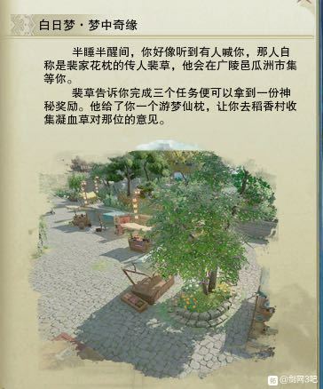 然后扬州再来镇敬师堂,对话回稻香村。还是滑稽的位置,注意一定要在凝血草旁边才可以使用第一步裴草给的【游仙梦枕】