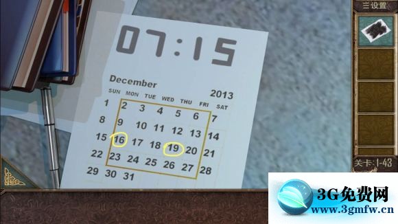 第三步:用药水涂抹电脑桌上的白纸,得到07:15的提示和一张日历,指针装入火炉边的挂钟,时间调到7点15,得到一张光盘