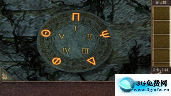 第二步:右侧时刻下方找到撬棍,来到右上角,把石环装入墙上,用扫帚扫干净木盒,撬开狗根据左上角得到线索和石环,输入密码,得到一块遮光板