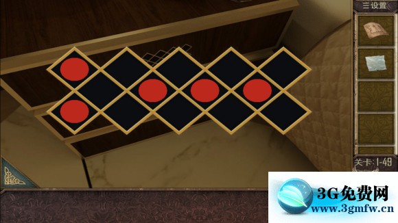 第四步:小木块装入左边门后开始游戏,按照从右边房间床头柜的提示,拼对图形后进入左边门内
