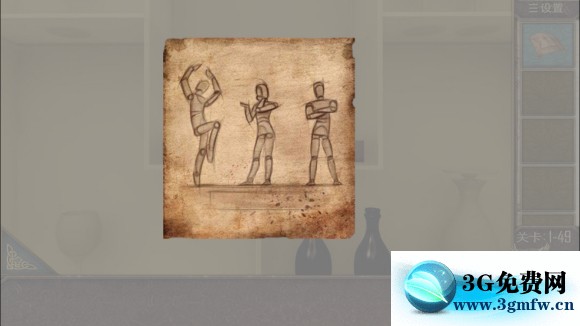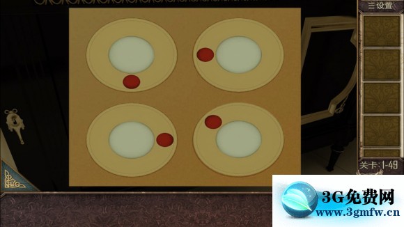 第二步:餐厅左边墙上找到个暗格,按照里面提示摆弄小人,得到子弹