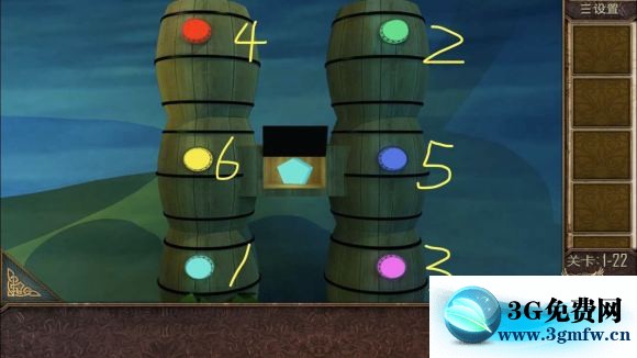 第二步:根据大鱼尾巴6条鱼观测到右侧类似酒桶上按钮的按键顺序,顺序如下图,得到五角星道具
