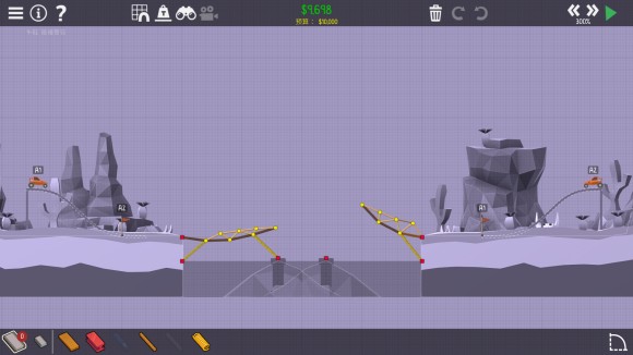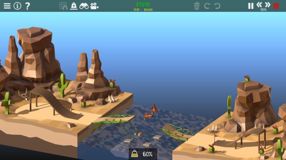 桥梁建造师2《PolyBridge2》4-2碰撞警告攻略 需要注意两边的跳台不能对称。需要用到弹簧使路面不至于被飞下来的车砸坏。所有弹簧均为收缩40%。若果不能通过的话则需要微调。 飞车效果↓ 老友网www.andlaou.com免费为你分享