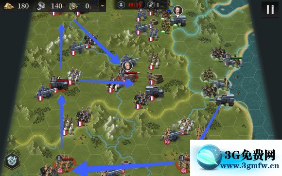 4到6回合吃掉法国来犯装甲车后攻击第二座城市,卖希佩尔