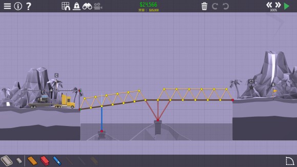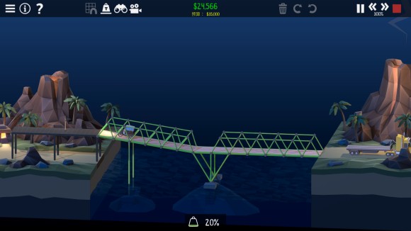 桥梁建造师2《PolyBridge2》2-16偷渡人员攻略 这关其实很简单,主要是支点给的恰到好处。液压杆竖着,拉伸50%就可以了。 液压效果↓(肯定是严丝合缝的) 老友网www.andlaou.com免费为你分享