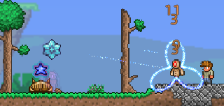 弹道类似水箭但是只能反弹一次,附带的霜火debuff对付前期小怪效果非常出色,有可观的照明效果
