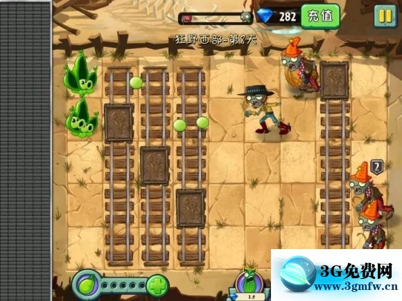 2.给双向射手:要充分利用双向射手前后攻击的优势,因此可以把它种在僵尸之间前后开大,会造成很不错的效果