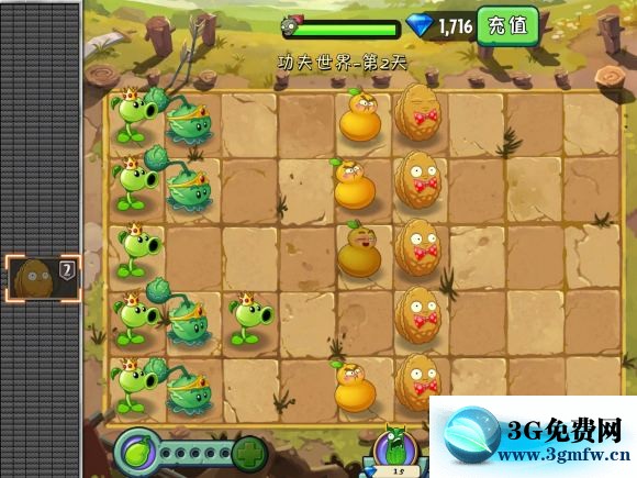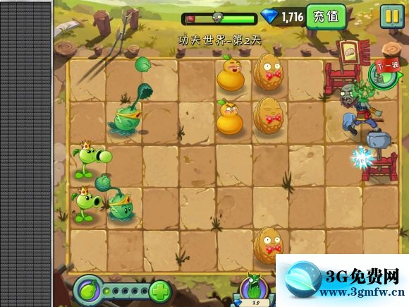 关卡内植物:卷心菜投手,豌豆射手,坚果,火葫芦,冰冻生菜