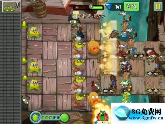 战术1:全场僵尸过多时给玉米投手使用能量豆,最后出巨人僵尸的时候用玉米投手拖延住,大量种植火龙草攻击巨人僵尸(但要先清小怪)