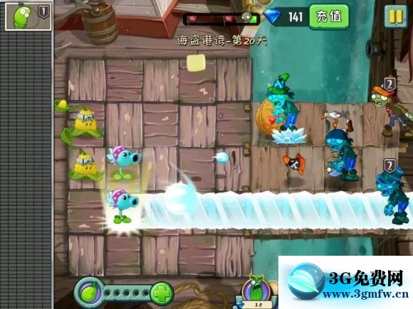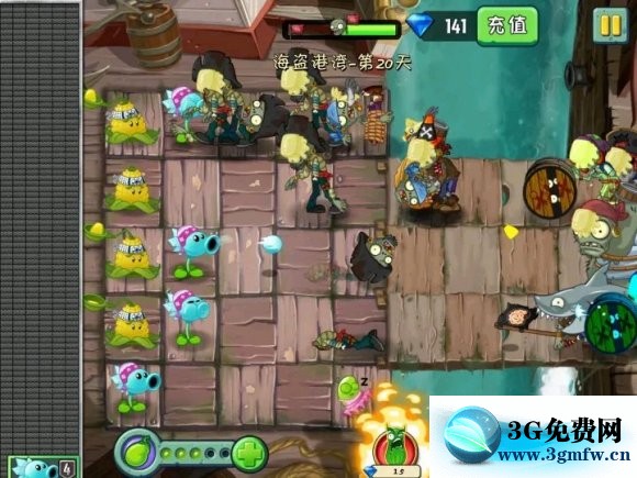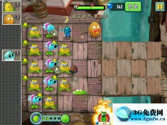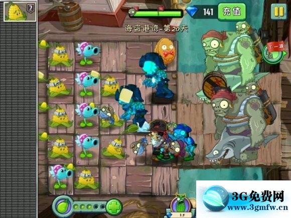 技巧:使用玉米投手拖延时间,再加上寒冰射手的减速效果把小型僵尸都拖死,把巨人僵尸留到最后杀死。