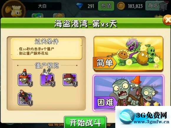 特殊通关条件:禁止僵尸踩花坛,10秒击杀8个僵尸