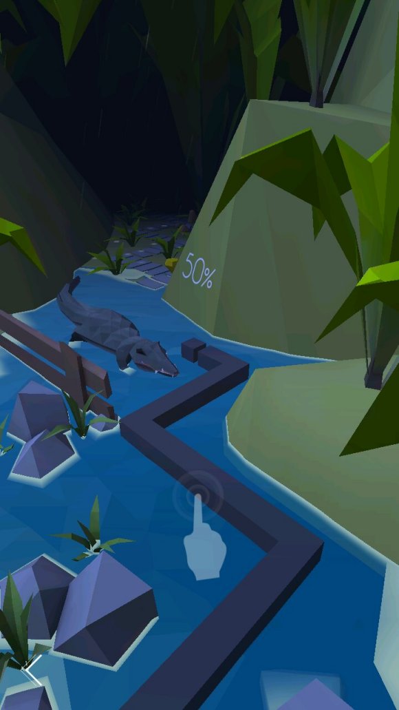 想要不被鳄鱼吃,就要离它远一点,贴着没有鳄鱼的那一边走,也不要害怕。图2处的鳄鱼比较吓人,不要撞进鳄鱼嘴里。
