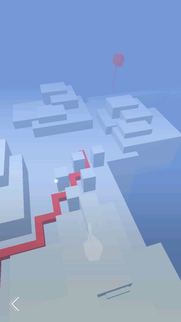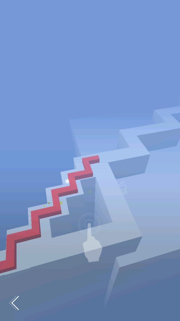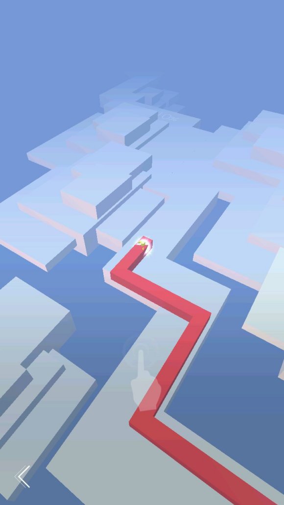 这里是一个7连,以前这里没有空隙,不能从边上走出去跳过钻石,这里必须7连,无法做任何简化。而且,这里的路非常窄,还伴随着线两侧的云柱子上升,造成视角遮挡,这里只能老老实实的跟着音乐精准点击,看着快要撞到远处的云了就要转弯。