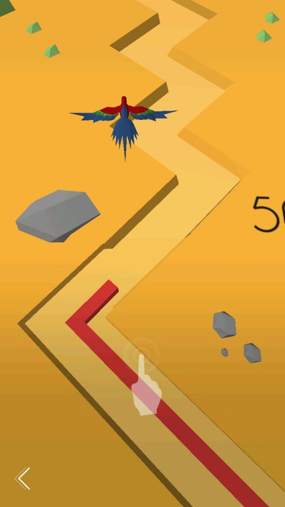 本关的第一次飞跃后,我们来到了土路上。那只鸟是我们的向导。