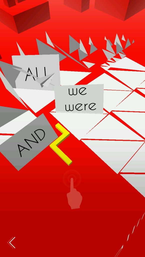 这里的飞跃处有两种走法,这是第一种,We were falling 每个词点1次,falling落地时是and,不用点,然后二连,we和all都要点。