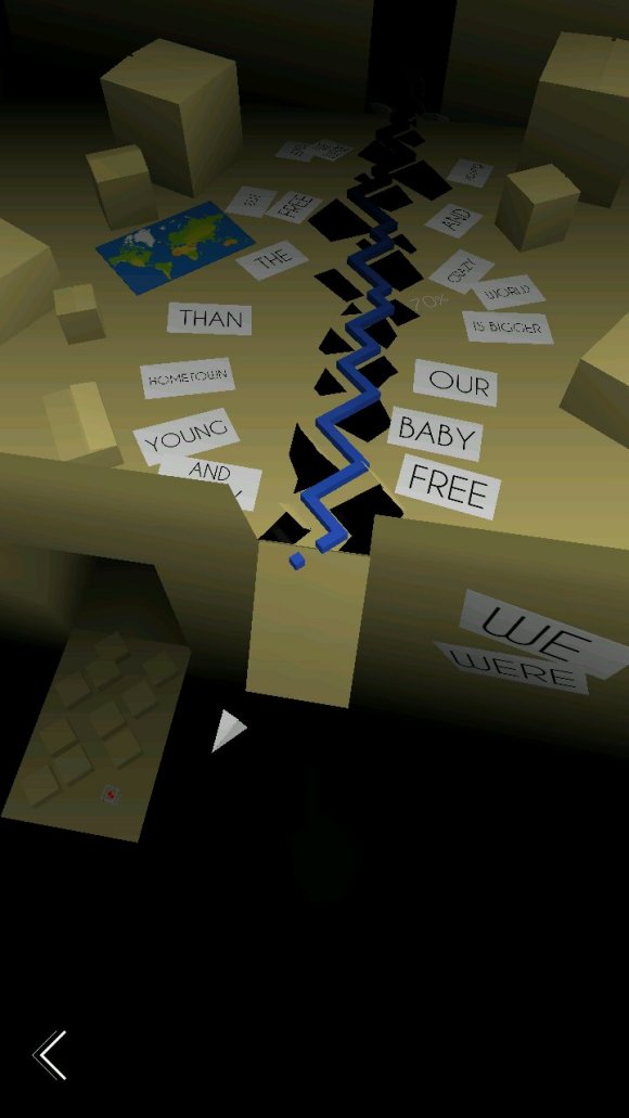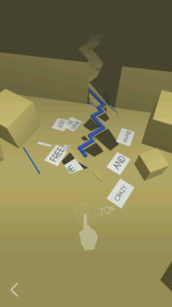 天空变成一片黑色,纸箱的世界。纸箱上,被两把剪刀剪出了许多洞。这些洞是不要掉进去,也不要撞上凸出来的纸。歌词里有world 我们可以看到那幅世界地图。