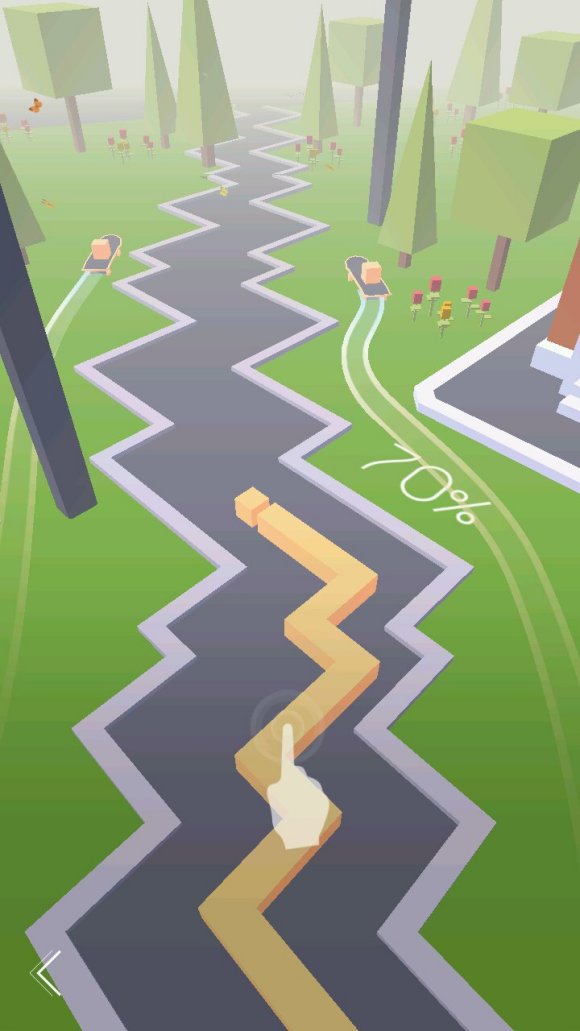 落地时只有一下,宁晚不早。飞跃中点击无效。这一段点击次数比较多,但路宽成这样,照样没有难度。看着路点就好。