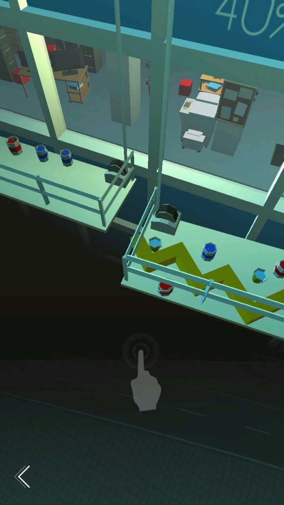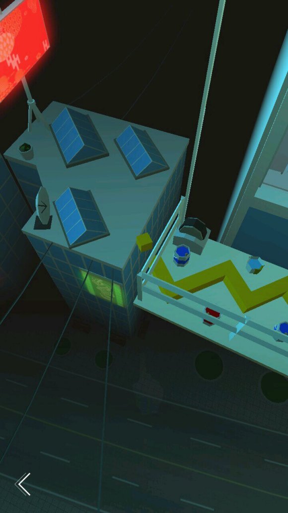 这个楼顶上的点击节奏与油漆桶段的前两个板子一样。但是,这明显是一个45°斜板,就怎样点都可以了。只要注意最后飞跃的方向即可,要朝右边飞跃,跳上下一个45°斜板。