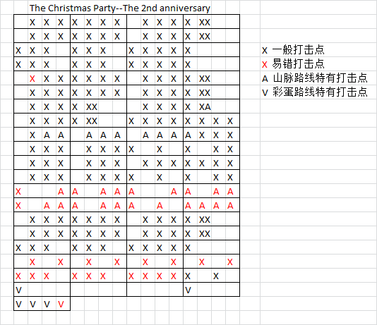 这是圣诞节派对的节奏,可以看出本关有几种经典节奏。第一行的节奏是第一种,第三行的节奏是第二种。与这两种节奏不一样的地方大多是由节奏1变化而来的。