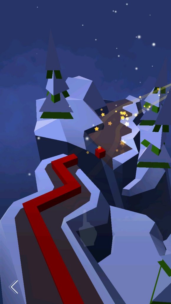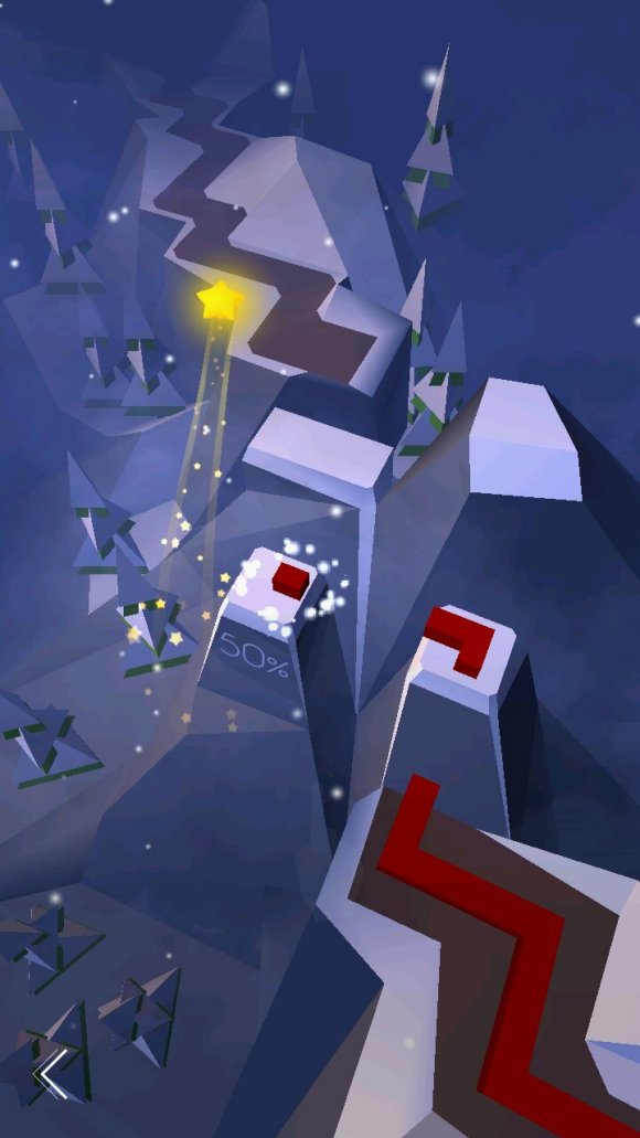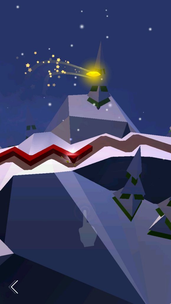 这里的节奏就区别比较大了,但也是看着路就可以判断出来的。山脉路线的飞跃特别多,这里就是,但没有误导性,所以还好。这几座小山的山顶是较厚的雪,但形状规则,且与周围的颜色差异大,所以不会误导我们。