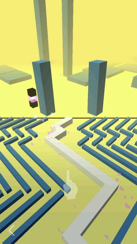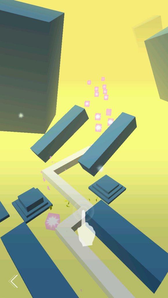 而这张图的左下角那里,判定比较宽,但是我们不能提前看到障碍物(小柱子)的位置,看到时就快到点击位置了。所以,要记一下节奏,很容易的,5+1的连击。