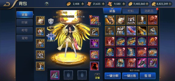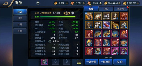 装备方面:防具60套,终结戒指,不朽项链,火手镯都是激化10的,武器是13湮灭,