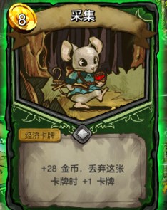特有的经济卡牌(改版添加):采集; 使用后获得28金币,去消耗的8金币 可赚20金币