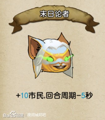 参谋:末日论者;+10人口,敌人进攻周期-5s;真不愧是末日论者,遇到随机招募参谋事件时要考虑考虑,抽到它之后,敌人会一波接一波的来,前中期是扛不住的。当然可以通过 澡堂 建筑卡牌 推迟进攻周期