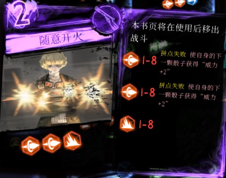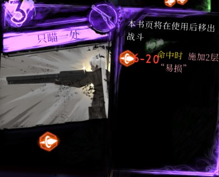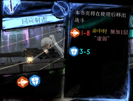 推荐程度:中,同样的远程bebuff卡,但是这张卡本身作为三段远程卡,其本身第三段的闪避是为了防止出现敌人连续弹反前两段攻击而配合的闪避卡,而目前的版本中假设前两发命中了第三段闪避会没有用处,而如果没有命中,通常也要面对同样高出闪避点的进攻卡,闪避的用处又会相对削弱,定位在远程卡里会相对尴尬,适用场景一般。