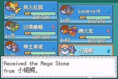 房子里拿到小锯鳄后别忘记取下mega石,向右走,朝沙漠方向前进,路上有只火球鼠 沙漠里有个不知干啥的遗迹,有知道的可以告诉我,通过沙漠前往火焰小径,在路口向左下角走,里面是基拉祈(会跳三次,第三次才是),通过小径来到缆车前